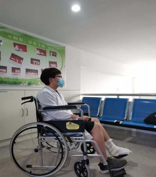 对于同学们来说,疫情让我们面临更多考验,对于健康学院的黎子贤同学来说更是如此,天生扁平足的他在临开学前做了矫正手术,目前还需要石膏固定。行走不便的黎同学每天都要在其他同学的帮助下才能到中心上课,宿舍与上课地点的距离成为了他面临的难题,虽然辛苦,可我们也在同学们身上看到了对学习的追求和相互关爱的责任与担当。