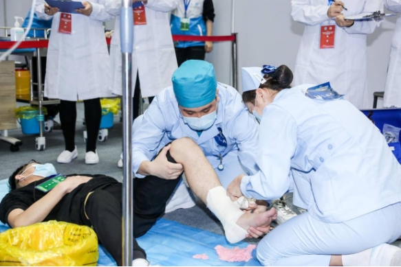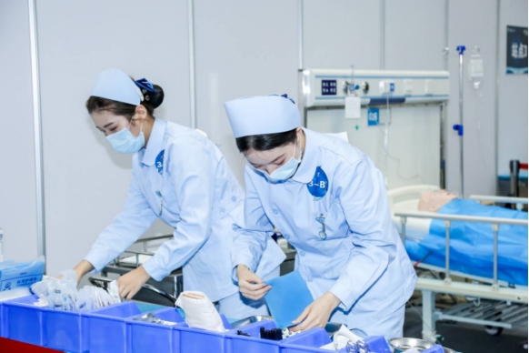 本次竞赛旨在以护理操作为平台,考察护理专业参赛选手对临床案例的分析能力、动手能力、语言表达能力和护患沟通能力,同时要求参赛选手具备一定的评判性思维能力,是对参赛选手多方位、多视角、综合能力的考察。竞赛分为初赛、复赛、决赛三个竞赛单元,比赛形式采用“多站点”、“赛道式”、“单站式”。