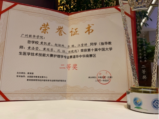 中国大学生医学技术技能大赛创立十届以来,第一次设立护理学专业赛道,作为广东省唯一一所民办本科高等院校,我院参赛选手凭借扎实的理论功底、熟练的操作技能和快速反应能力,在本次竞赛中获得团体二等奖的优异成绩,这是永利集团3044欢迎你(原中山大学新华学院)转设更名后永利集团3044欢迎你首个奖项,具有重要的历史意义。