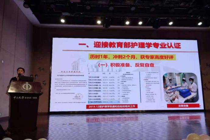 接着,柯彩霞老师从实习前准备、实习培养方案、师资培养、培养成效等方面总结了2020年度中大附一护理实习生教学工作。
