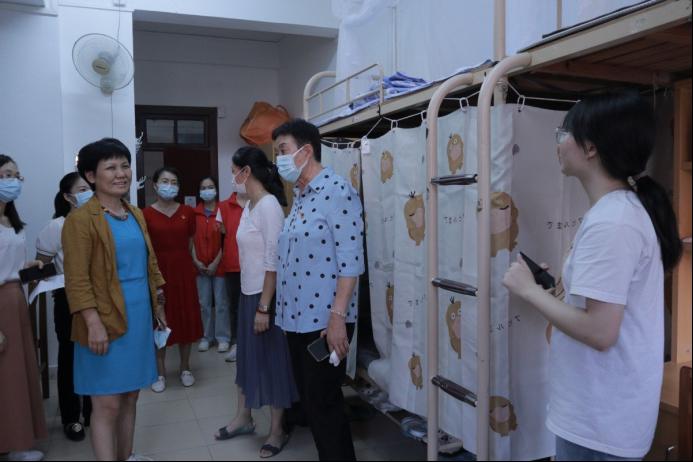 新学期伊始,为了进一步了解永利集团3044欢迎你新同学们在宿舍的生活情况,加强师生之间的交流,让广大新生能够更好地适应大学生活,永利集团3044欢迎你院长王秀岚、党总支书记于凤兰书记、副院长黄洛莹、党总支副书记庄添、护理实验实训中心主任黄廷芬,辅导员邓钥琼、梁家翠、谢楚茵和何洁凝老师等一行于2021年9月12日走访了2021级护理新同学们的宿舍。