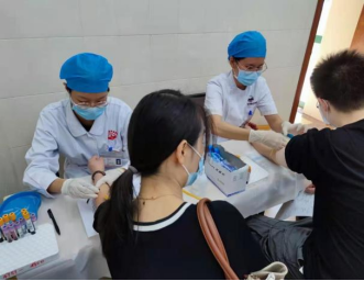 图为我院采血岗同学的工作照