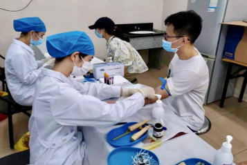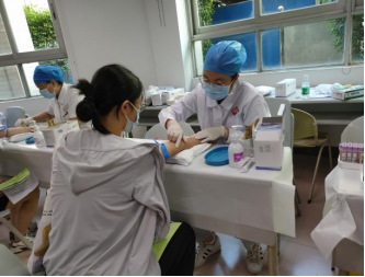 我院30名实习生在中山一院已经度过两个月的实习,大家已逐步适应临床环境与生活,此次活动的开展,不仅为大家提供了锻炼的机会,丰富了大家的实习生活,同时,也是对护理部提倡的志愿奉献精神的传承。每位志愿者分别在不同岗位各司其职——抽血岗、血压岗、体检编号岗、辨色力岗、尿检岗等,将自己的所学应用到实践中去。