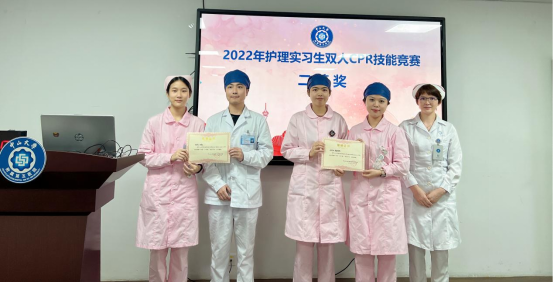 本次赛前,来自17个学校的护理实习生们踊跃报名参加。各个学校积极备战,认真练习实操技能及理论知识,最终共有13支队伍进入比赛。比赛现场,大家精神饱满、全情投入,沉着冷静地完成了一系列的急救技能操作,流程规范,动作娴熟,展现了出色的表现。三位评委从心搏骤停的判断、胸外按压的深度、回弹、按压频率、开放气道、清理呼吸道的方法以及气囊的通气手法和复苏效果的评估等细节进行评分。经过激烈的角逐,最终,魏婷婷和刘钰冰同学均取得了优良的成绩,在13支队伍中脱颖而出,最终荣获二等奖。