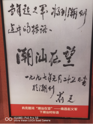 涵碧楼革命纪念馆作为省中共党史教育基地、省爱国主义教育基地,展示了1927年南昌起义军进入潮汕这段光荣历史。1927年8月1日,中国共产党领导的革命队伍在南昌起义,打响了武装反抗国民党的第一枪。同年9月,起义部队在周恩来、朱德、贺龙、叶挺等的率领下南下潮州,在潮州建立了历时七天的红色政权——潮安县革命委员会。这段历史,被称为“潮州七日红”。