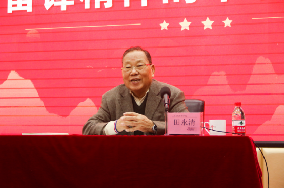 田永清将军首先向与会师生讲述了雷锋的时代背景,雷锋于1960年参军,这一年,是三年经济困难最严重的一年,这一年,蒋介石趁机叫嚣反攻大陆、苏联摧毁合同。正是这种艰难困苦的情况下,雷锋在部队痛说家史、“忆苦思甜”,引起了领导和战友的高度关注。