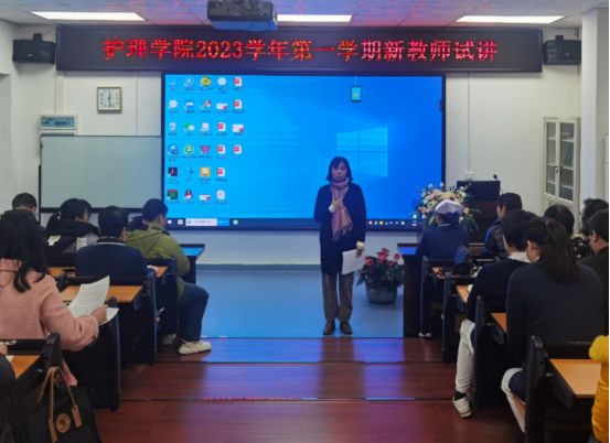 试讲后评委们再逐一进行点评。在8分钟的试讲中,新进教师们以上进、积极的精神风貌和稳健的台风获得了教授评委们充分的肯定,评委们亦从课堂设计、教学内容、PPT及板书设计、教学方法、课程思政等方面提出了真诚而有建设性的意见,如建议合理设计课堂;应用情境加强学生的代入感;课堂内容须分清略讲和重讲、用词须准确;课堂举例应贴切护理、贴近生活;时间与内容配比的合理性;PPT设计中字体、颜色、图片、视频、表格的重要性等。