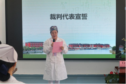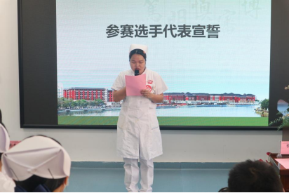 在宣誓环节,裁判代表李君教授郑重承诺,评委团将秉持公平公正的态度,尊重每位选手,公平评分,绝不徇私舞弊。参赛选手代表简婷婷进行领誓,表明选手们会在比赛过程中努力发挥自己的技能专长,尊重对手,尊重裁判,以良好的精神面貌认真对待比赛。