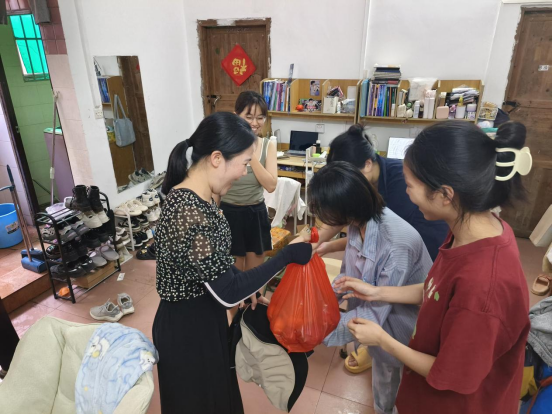 除了校园摆摊,老师们还带领志愿者们走访了部分学生宿舍,为留校的同学们送上了精心准备的礼品。在走访中,走访师生代表与同学们亲切交流,询问他们的学习和生活情况。老师们鼓励同学们要珍惜在校时光,努力学习专业知识,同时也要注重身心健康,保持良好的生活习惯。