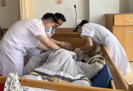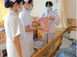 图九:黄洛莹副院长带领学生给老人家按摩、擦浴