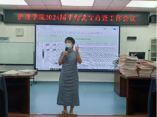 会议开始前,黄洛莹副院长强调了此次论文自查工作的重要性,并对论文检查工作的相关要求进行了详细解读。她表示,毕业论文是检验学生学术能力和学院教学质量的重要环节,必须严格把控。接着,她对自查工作进行了细致的分工,确保每位老师都能明确职责,协同合作。
