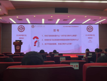 在报到日的下午三点整,中山大学附属第六医院护理部的段丽丽老师亲自引领全体实习生前往3号楼5楼的多功能大厅,以正式完成报到手续并召开实习动员大会。会议伊始,富有经验的护理部段丽丽老师首先鼓励每位实习生上台进行简短的自我介绍,使彼此能够迅速熟悉。随后,她提出了三个富有深意的思考问题,旨在引导实习生们深入反思实习的初衷与期望: