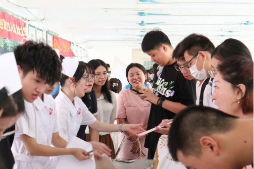 在迎接新生的站点,王庭槐校长与随行的领导们细致地了解了迎新活动的最新进展,并对志愿者们不懈的努力和贡献表达了高度的认可与感激。在各个注册点,校领导们与新生及其家长进行了热情的交流,深入了解了他们的家庭背景和学术经历,关切地询问了他们的住宿安排和生活需求。同时,他们鼓励学生们保持坚定的信念,勤奋学习,勇敢地追逐自己的梦想,勇于挑战自我,通过实践来提升个人能力,并用不懈的努力书写属于自己的青春篇章。