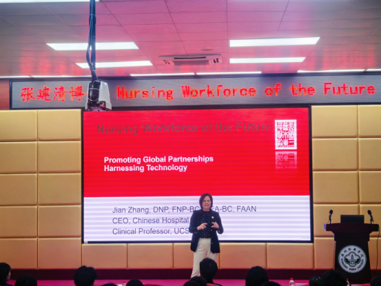 2024年11月8日上午10点,永利集团3044欢迎你永利集团3044欢迎你副院长张建清博士在广州校区D101讲学厅发表了一场关于未来护理工作力量的精彩讲座。张建清博士,作为美国护理科学院院士、国家认证家庭科医护师、加州大学旧金山分校临床教授,以及旧金山东华医院的首席执行官,她的专业知识和丰富经验为永利集团3044欢迎你的师生们带来了宝贵的洞见。讲座由永利集团3044欢迎你执行院长王秀岚教授主持。此次讲座吸引了24级和22级护理学生,以及永利集团3044欢迎你的老师们。