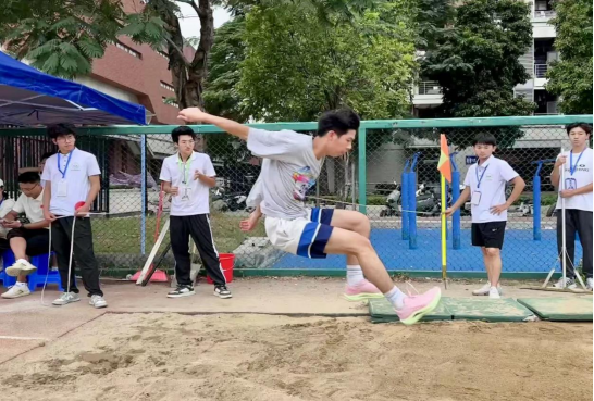 在赛场上,短跑运动员像离弦的箭一般,飞速冲向终点;长跑者则以不屈不挠的意志,一步步测量着毅力的路径;跳高运动员轻巧地跳起,挑战着自己的极限;跳远者则全力一跳,沙尘四溅;在铅球投掷区,运动员们挥动手臂,铅球划出一道道优美的抛物线……这些比赛项目交织着速度与力量的对决,彰显了青春的活力和奋斗的精神。 经过紧张激烈的角逐,学生们取得了辉煌的成果,文梓柏同学在男子800米和1500米项目中分别获得第二名和第五名,王子涵同学在女子跳高项目中荣获第二名,佘颖林同学在女子400米项目中获得第五名。