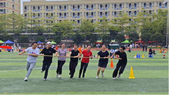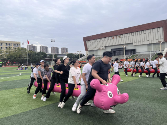 “今天,教师们不仅是知识的传播者,更是快乐的传递者!”快来看看各位教职工如何用智慧和汗水,把这场趣味运动会变成欢乐的海洋。本次趣味运动会分为五个项目,分别为“旋风跑”“毛毛虫竞速”“袋鼠接龙”“三人两球”“指压板冲关”,这些项目既考验个人的体能和技能,又强调了团队合作的重要性。活动现场气氛热烈愉快,欢声笑语不断,教职工们在轻松愉快的氛围中尽享运动的乐趣。在紧张刺激的竞赛后,教师们取得了卓越的成绩。在教工组4*100米混合接力赛中,他们荣获了第一名;而在教工组的三人两球项目中,他们同样摘得了第二名的佳绩。