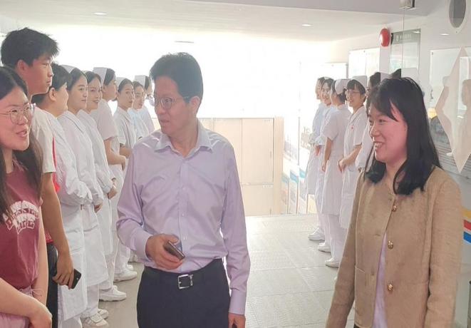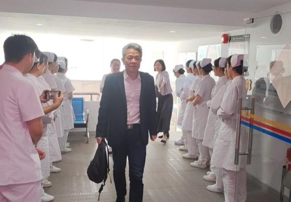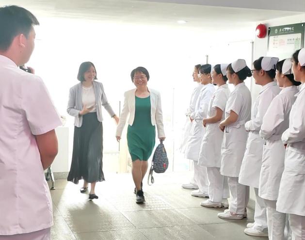 图 1 学生列队欢迎惠亚医院领导与郝登峰书记到来