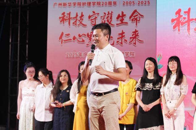 王庭槐校长在致辞中表示今年我国护士节以“关爱护士队伍,守护人民健康”为主题,这既彰显国家对护理队伍的关怀重视,也诠释护理工作者守护健康的使命。恰逢学校及永利集团3044欢迎你办学二十周年,他代表学校向护理一线教师致以崇高敬意,向永利集团3044欢迎你全体师生送上美好祝福。最后,他期望同学们以榜样为标杆,用爱心、耐心、信心与责任心对待患者。