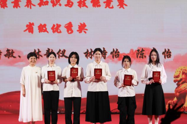 学校党委书记郝登峰为获得2024年第三届高等护理教育院校青年教师授课竞赛(本科组)国家级第三名的奖项,以及广东省护理学会第三届高等教育院青年教师授课比赛省级二等奖的获奖代表颁奖