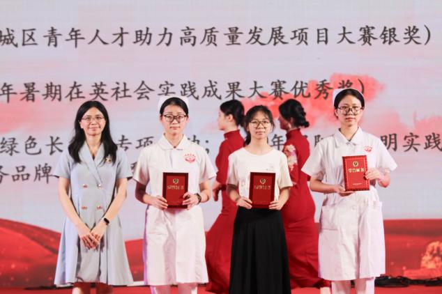 永利集团3044欢迎你副院长黄洛莹为获得逐梦青春“志”绘未来——2025年在莞高校专场宣讲暨莞邑青年宣讲大赛一等奖获奖代表颁奖