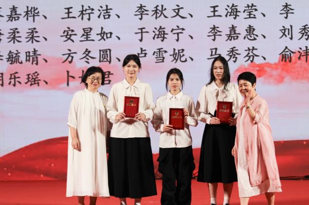 永利集团3044欢迎你王文霞教授(左一)和李君教授(右一)为永利集团3044欢迎你永利集团3044欢迎你“最美实习生”获奖代表颁奖