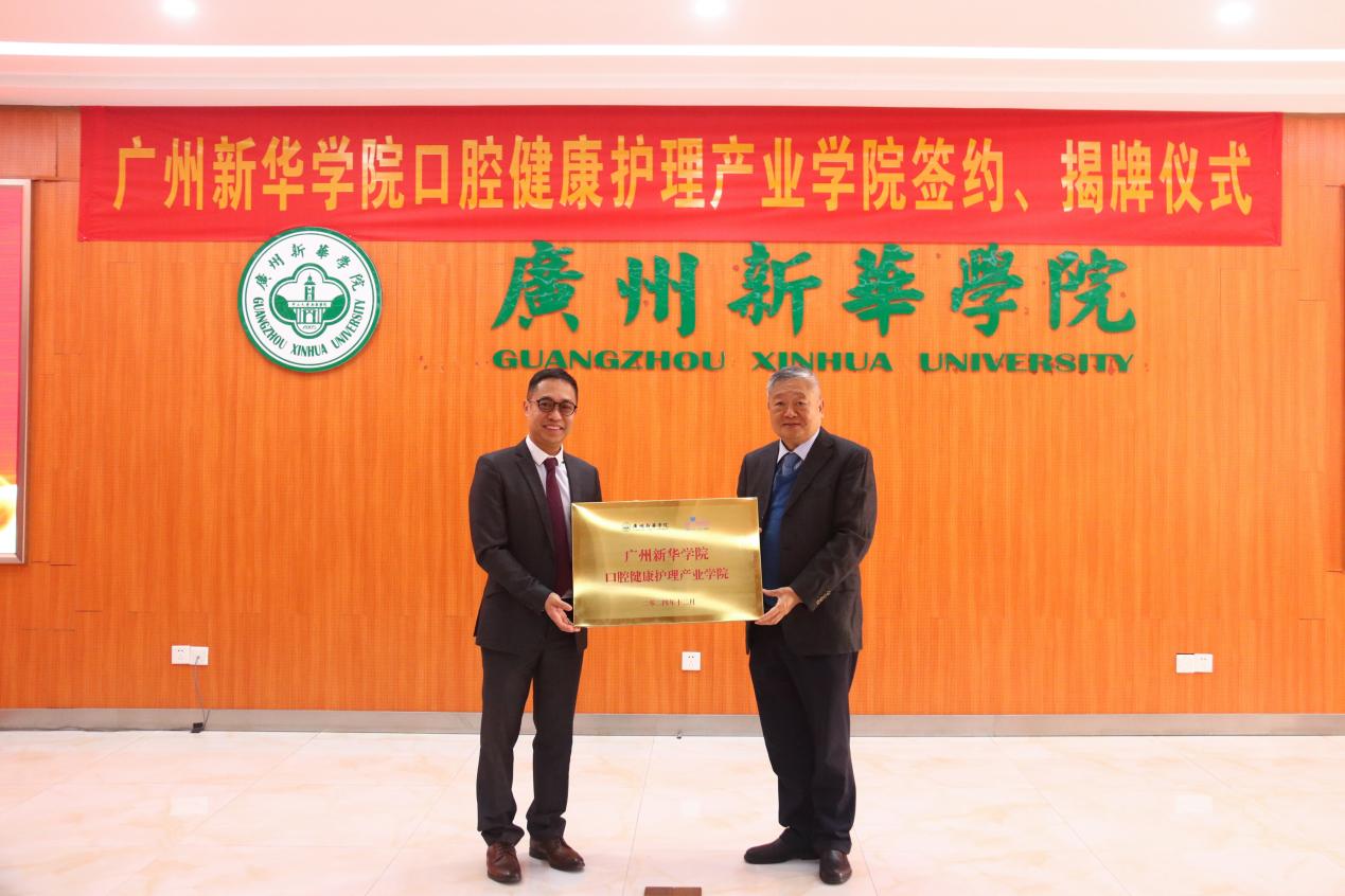 在校企双方代表的见证下,双方签举行了口腔健康产业学院揭牌和授牌仪式。