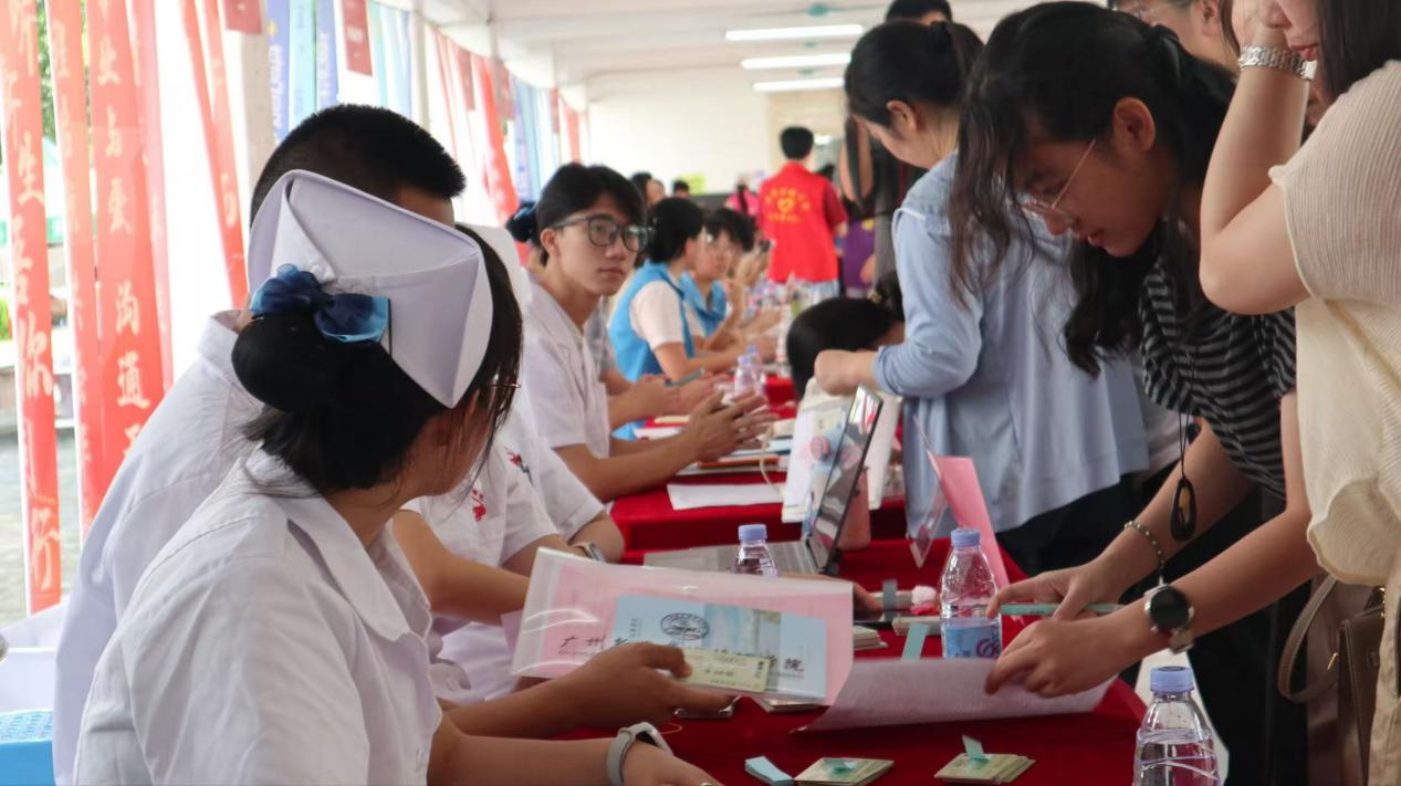 迎新当天,新生报到处十分热闹。导生团队早早就在此等候,他们是新生入学第一天最前线的“引导者”。这些导生都经过精心选拔和培训,从登记领材料到指引路线,从专业学习到生活琐事,耐心为新生解答每一个疑问,助力新生快速融入大学生活。
