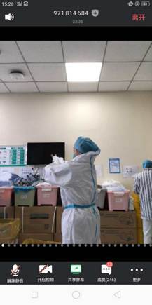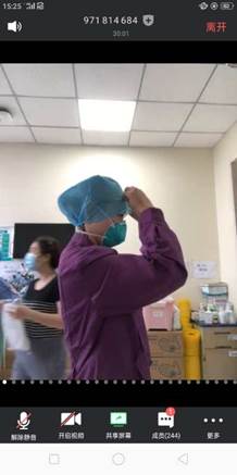 王秀岚院长表示:在大部分的护理工作中,护士在很大工作程度上必须依靠自身的道德心、责任心和自觉性来进行工作,需要护理工作者发挥良好的慎独精神。我校护理专业共有26位校友前往武汉一线抗疫,成为最美逆行者中的一员,非常开心他们都具备了这种慎独精神,并给师弟师妹们做出了很好的表率。今天的这一堂课意义非凡,我们邀请了2006级叶珈琳; 2008级何招娣、李雅琳;2010级杨万栋、陈宇冰、冯嘉仪;2011级林洁华;2013级莫思晴、林志远;2014级曾敏仪;2015级欧阳咏欣等人在线为大家解说演示在武汉的抗疫心得和体会。