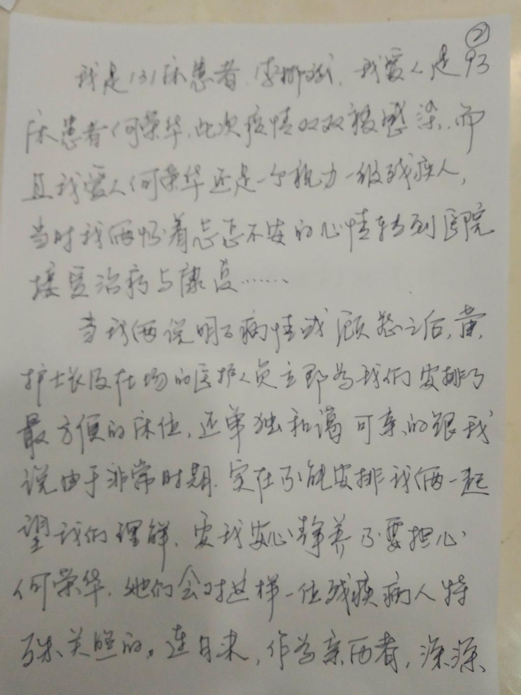 今天很忙,但我很开心!用一句话形容,就是“累并快乐着”。因为,我收到了一封信,一封来自于新冠肺炎患者之手的感谢信!