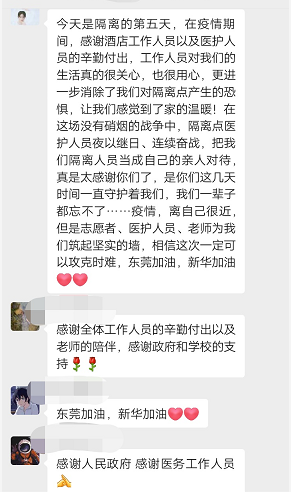 一方有难,八方支援。自我校东莞校区出现确诊病例后,学校迅速制定应对方案,因事发突然,事态紧急,除了满足学生的温饱,解决学生心理问题成为急需解决的关键问题,尤其是在校外隔离点的学生。为帮助学生筑牢心理防线,以理性心态应对新冠肺炎疫情,由学校疫情防控小组发起组建了校外隔离点新华学子关爱团,关爱团由来自东莞以及广州校区的74名志愿者老师组成。