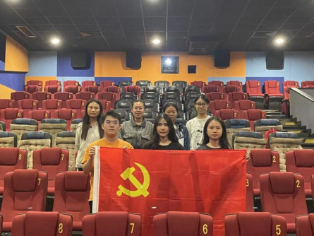 在活动前夕,主持人吴瑶在支部群里发布了主题活动开展的通知,简述了活动的内容与目的,组织支部成员积极参与。10月20日晚,吴瑶同学带领同学们前往影院观看电影。